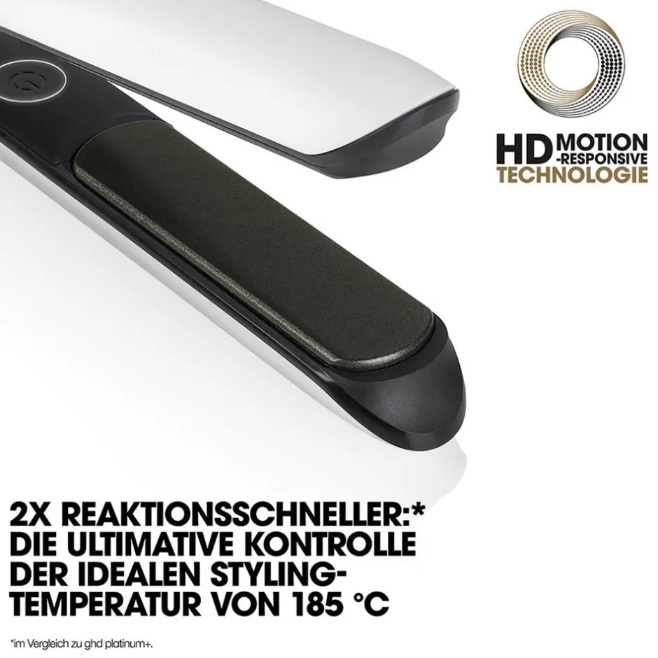 Der ghd – good hair day ghd chronos Styler weiß eröffnet Ihnen eine neue Dimension des Haarstylings. Mit seiner innovativen HD Motion-Responsive Technologie reagiert das Gerät doppelt so schnell auf Ihre Bewegungen und hält konstant die ideale Temperatur von 185°C. Dieser Styler bietet eine beeindruckende Kombination aus Leistung und Schonung: Mit 3x mehr Schutz vor Haarbruch und bis zu 85% mehr Glanz sorgt er für langanhaltende, atemberaubende Ergebnisse. Die Ultra-Gloss Beschichtung der Stylingplatten ermöglicht ein müheloses Gleiten durch Ihr Haar, während das verbesserte Gabelgelenk eine perfekte Plattenausrichtung garantiert. So erhalten Sie die nötige Leichtigkeit und Kontrolle für kreative Stylings, sei es glatte Looks, natürliche Beach Waves oder definierte Locken. Dank des automatischen Schlafmodus bleibt Ihre Sicherheit gewährleistet, da der Styler nach nur 10 Minuten ohne Nutzung abschaltet. Der ghd chronos Styler ist die ideale Wahl für alle Haartypen, und verspricht Ihnen unvergessliche good hair days.