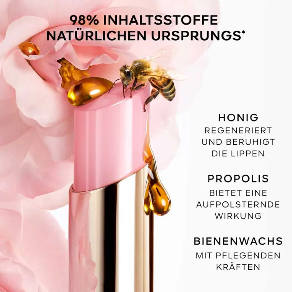 Der Guerlain Kisskiss Bee Glow Balm offenbart die natürliche Schönheit Ihrer Lippen, indem er sie mit einem Hauch von Farbe und einem glanzvollen Schimmer bereichert. Die innovative Formel, die zu 98% aus natürlichen Inhaltsstoffen besteht, versorgt Ihre Lippen 24 Stunden lang mit Feuchtigkeit. Diese reichhaltige Pflege basiert auf der Kraft des Honigs, der beruhigende und regenerierende Eigenschaften besitzt. Die geschmeidige, schmelzende Textur des Balsams sorgt für ein angenehmes Gefühl, das den ganzen Tag anhält. Zusätzlich sind Aktivstoffe natürlichen Ursprungs enthalten, die Ihre Lippen sichtbar aufpolstern und nähren, sodass sie mit jeder Anwendung weicher und schöner werden.