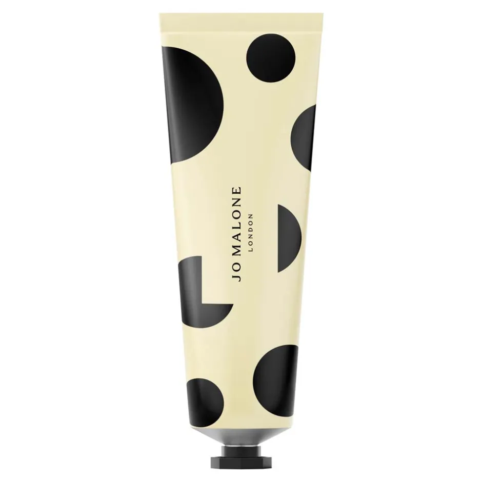 Die Jo Malone London Hand Cream besticht durch ihr elegantes Design in einem vollständig recycelbaren Aluminiumgehäuse. Die Tube kombiniert schlichte Ästhetik mit funktionaler Raffinesse. Großzügige schwarze Punkte auf cremefarbenem Hintergrund verleihen der Verpackung eine moderne und gleichzeitig klassische Ausstrahlung. Die klare Linienführung und die dezente Farbwahl unterstreichen den luxuriösen Charakter der Creme, während das minimalistische Design die Handhabung angenehm erleichtert. Ein stilvolles Accessoire, das nicht nur Ihre Pflege, sondern auch Ihr Badezimmer verschönert.