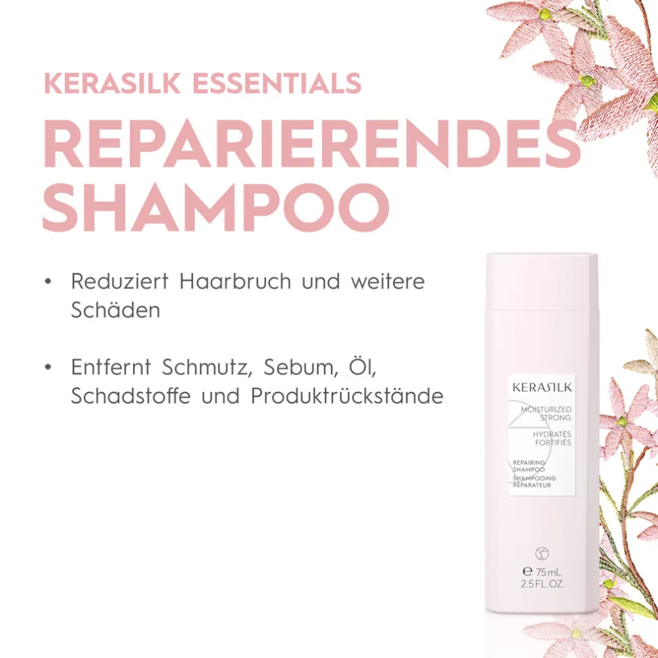 Das Kerasilk Travel Set bietet eine umfassende Pflegekur für strapaziertes und trockenes Haar. Das reparierende Shampoo mit biomimetischer Seide und Hyaloveil® reinigt sanft und spendet gleichzeitig Feuchtigkeit. Es reduziert Haarbruch und neutralisiert hartes Wasser, wodurch die natürliche Balance des Haares erhalten bleibt. Der stärkende Conditioner verleiht Ihrem Haar Elastizität und verbessert die Kämmbarkeit. Er wirkt tiefenpflegend, reduziert Schäden und stärkt die Haarstruktur von innen heraus. Der Liquid Cuticle Filler ist ein hitzeaktiviertes Spray, das Ihre Haare schützt und Frizz reduziert. Mit seiner reichhaltigen Formel sorgt er für langanhaltende Regeneration und verbessert die Schuppenschicht. Die regenerierende Maske vollendet das Set, indem sie intensive Feuchtigkeit spendet und die Widerstandsfähigkeit der Haare signifikant erhöht. Jedes Produkt im Set ist zu 100 % vegan und speziell darauf ausgelegt, die Haaroberfläche wieder aufzubauen und zu beleben.