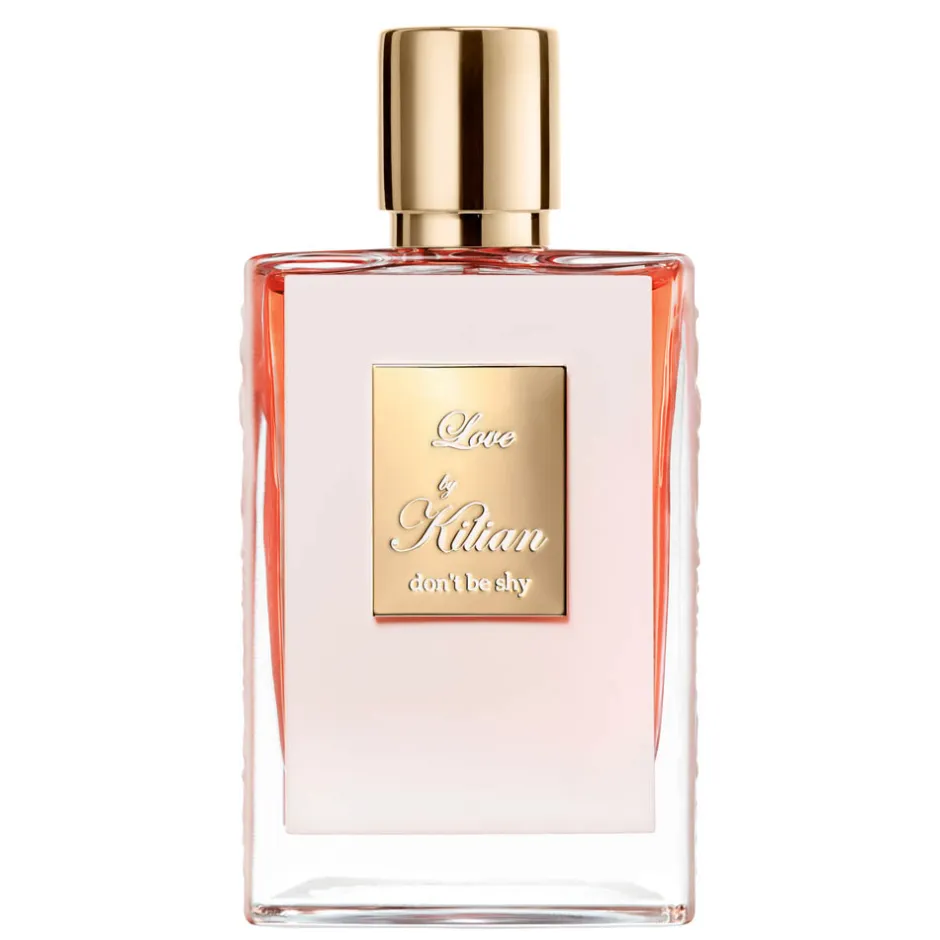 Der Flakon des Kilian Paris Love don’t be Shy Eau de Parfum Nat. Spray Refillable besticht durch seine elegante, rechteckige Form, die sowohl modern als auch zeitlos wirkt. Ein goldener Verschluss krönt das Design und verleiht ihm eine luxuriöse Note. Die klare Glasflasche lässt die zarte, roséfarbene Flüssigkeit erahnen, welche den romantischen Charakter des Duftes unterstreicht. Eine goldene Plakette auf der Vorderseite des Flakons, graviert mit stilvollen Lettern, fügt dem Erscheinungsbild einen Hauch von Raffinesse hinzu. Dieses exquisite Design macht das Parfum zu einem wahren Schmuckstück in jeder Sammlung.