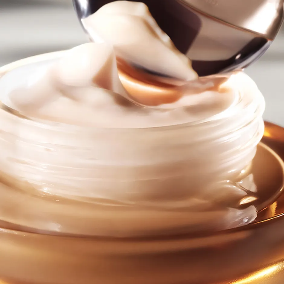 Der La Mer The Concentrated Night Balm präsentiert sich in einem eleganten, edlen Flakon, dessen Design Raffinesse und Exklusivität ausstrahlt. Der sanft geschwungene, halbtransparente Behälter in warmen Goldtönen wirkt wie ein kostbarer Schatz, der in Ihrer Pflegeroutine nicht fehlen darf. Die dezente, geschwungene Form des Deckels und die harmonische Farbgebung verleihen dem Flakon eine zeitlose Ästhetik, die jeden Blick auf sich zieht. Diese kunstvolle Gestaltung unterstreicht die Premiumqualität des Produkts und fügt sich perfekt in jede anspruchsvolle Umgebung ein.