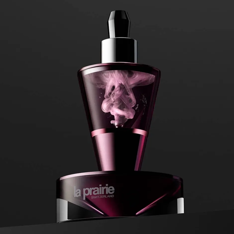 Der La Prairie-Flakon ist ein Meisterwerk der modernen Eleganz, das die Exklusivität des Inhalts widerspiegelt. In einem facettenreichen, violetten Design gehalten, steht er auf einem stabilen, transparenten Sockel, der dem gesamten Erscheinungsbild eine schwebende Leichtigkeit verleiht. Die silberne Kappe krönt das Design, während die raffinierte Form die luxuriöse Natur der Behandlung unterstreicht. Die klaren, präzisen Linien des Flakons harmonieren perfekt mit der hochwertigen Verarbeitung und lassen den ästhetischen Anspruch spürbar werden. Ein wahres Kunstwerk für Ihre Hautpflege-Routine, das jedes Badezimmer in einen exklusiven Spa-Bereich verwandelt.