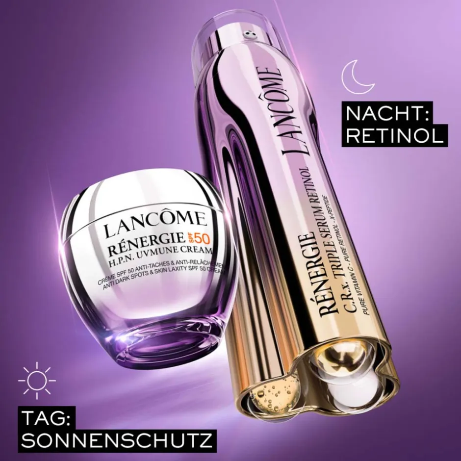 Das Lancôme C.R.X. Triple Serum Night setzt neue Maßstäbe in der Hautpflege. Bereits nach der ersten Anwendung spiegelt sich Frische und Strahlkraft in Ihrem Teint wider, was 9 von 10 Testerinnen bestätigten. Die exklusive Verbindung von Retinol, Vitamin C, X-Peptiden und Ceramiden bekämpft effektiv Falten und Hautunebenheiten, während dunkle Flecken reduziert werden. Diese innovative Formel vereint drei hochwirksame Seren in einer patentierten Flasche, die bis 2039 geschützt ist. Diese leistungsstarke Kombination bietet Ihnen ein neues Niveau der Wirksamkeit, das Ihre Hautpflege-Routine revolutioniert.