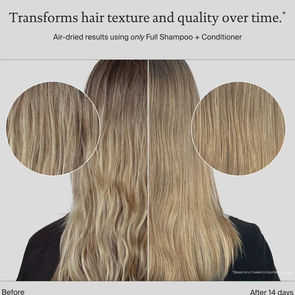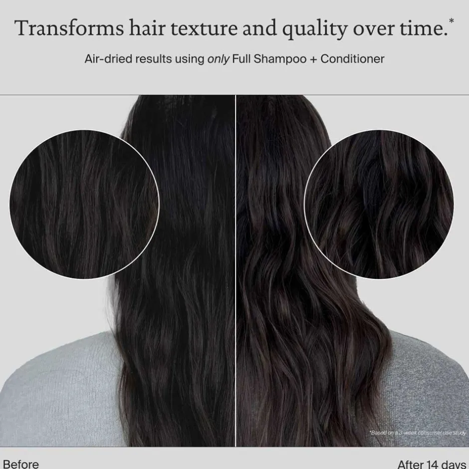 Beginnen Sie mit Full Shampoo. Dann Full Conditioner auftragen, im Haar verteilen und ausspülen.