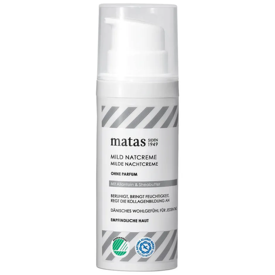 Die Matas Beauty Milde Nachtcreme ist ein wahres Wohlfühlerlebnis für Ihre Haut. Speziell konzipiert für empfindliche Haut, zeichnet sich die Creme durch ihre einzigartige sanfte Textur aus. Dank des enthaltenen Allantoins wird Ihre Haut intensiv mit Feuchtigkeit versorgt, wodurch sie geschmeidig und zart bleibt. Allantoin ist bekannt für seine reiz-lindernden und beruhigenden Eigenschaften, die dazu beitragen, dass Ihre Haut über Nacht regeneriert und erfrischt erwacht. Diese exquisite Nachtcreme verzichtet bewusst auf Parfum, um das Risiko von Irritationen zu minimieren, sodass Sie sich ganz auf die pflegenden Wirkstoffe verlassen können.