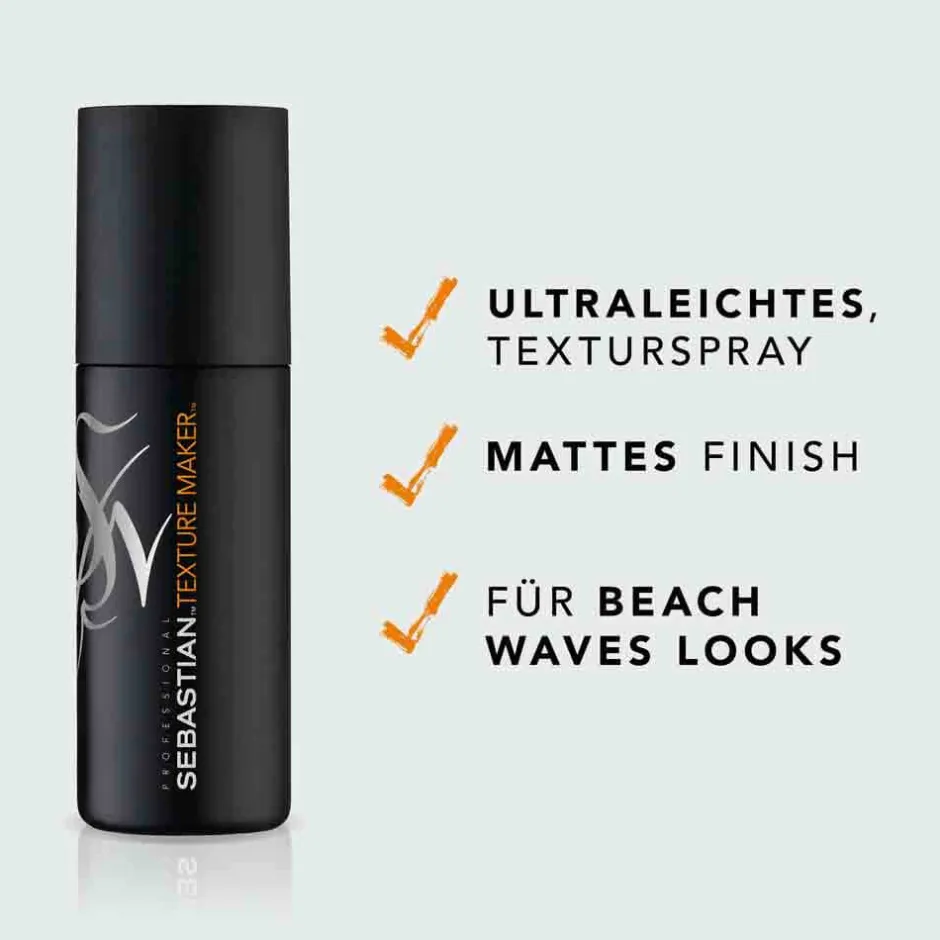 Mit dem Sebastian Professional Texture Maker Haarspray verleihen Sie Ihrem Haar eine mühelose Leichtigkeit, die es Ihnen erlaubt, Ihren Stil jederzeit neu zu definieren. Dieses ultraleichte Texturspray ist mit feinen Mikrokristallen angereichert, die Ihrem Haar ein mattes Finish schenken und zugleich für einen mittleren Halt sorgen. Ob für einen lässigen Tageslook oder eine elegante Abendfrisur, dieses Spray bietet Ihnen die Flexibilität, die Sie sich wünschen. Seine umstylbare Formel macht es besonders vielseitig und ermöglicht es Ihnen, Ihre Frisur im Handumdrehen zu verändern, ohne zusätzliche Produktreste zu hinterlassen.