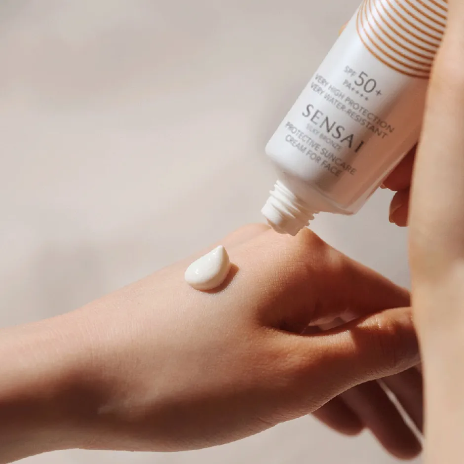 Die SENSAI PROTECTIVE SUNCARE CREAM FOR FACE 50+ bietet Ihnen umfassenden Schutz vor schädlichen UV-Strahlen, während sie gleichzeitig die sichtbaren Zeichen der Hautalterung bekämpft. Dank der innovativen Textur lässt sich die Creme mühelos verteilen und hinterlässt ein seidig-mattes Finish, das die Haut geschmeidig und mit Feuchtigkeit versorgt. Das neue Filtersystem sorgt dafür, dass keine fettigen Rückstände auf der Haut zurückbleiben, sodass Sie den ganzen Tag über ein frisches Gefühl genießen können. Die Formulierung wurde mit Rücksicht auf die Umwelt entwickelt, um die Auswirkungen auf aquatische Ökosysteme zu minimieren. Eingebettet in die Silky Bronze Kollektion, unterstreicht diese Creme den verantwortungsbewussten Umgang mit natürlichen Ressourcen. Der Angelica Keiskei Leaf/Stem Extract, aus nachhaltigem Anbau, ist ein zentraler Bestandteil dieser pflegenden Formel.