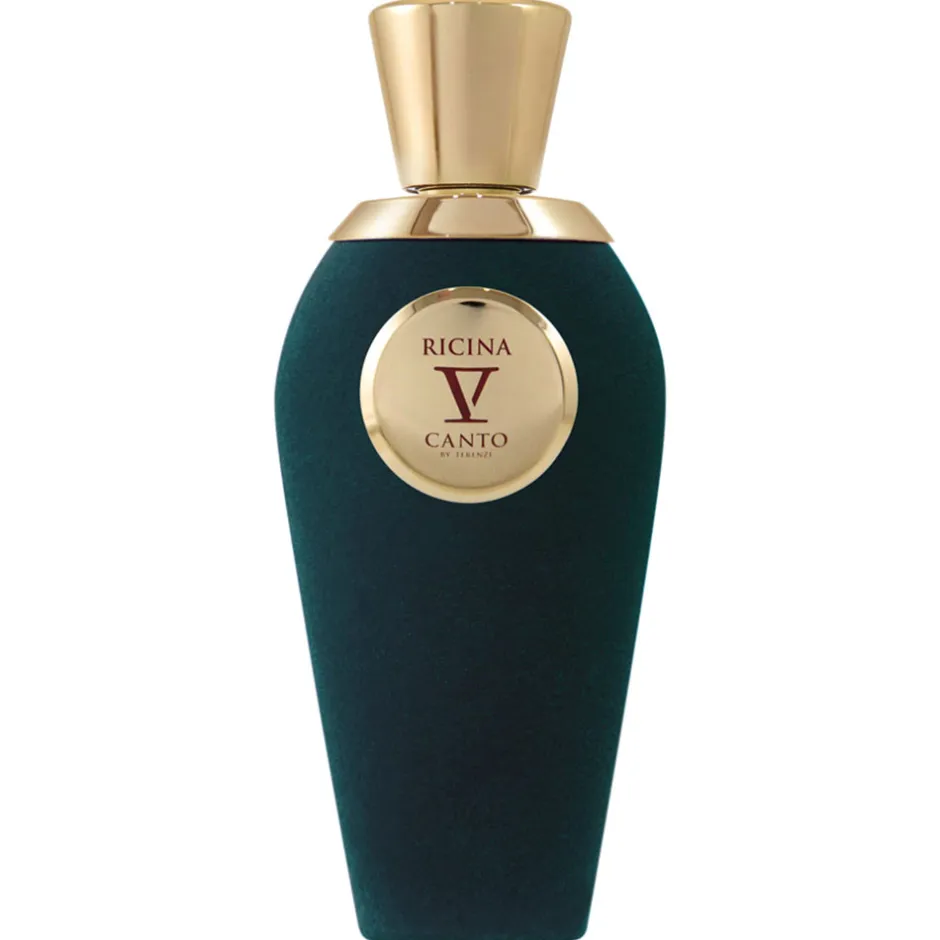 Der Flakon des V Canto Ricina Extrait de Parfum ist ebenso beeindruckend wie sein Duft. In einer eleganten, samtig grünen Form gehalten, strahlt er zeitlose Raffinesse aus. Die geschwungene Silhouette wird von einem glänzenden, goldenen Verschluss gekrönt, der die Exklusivität dieses Parfums unterstreicht. Das Etikett in dezentem Goldton fügt sich harmonisch in das Gesamtbild ein und verleiht dem Flakon eine subtile, jedoch kraftvolle Präsenz. Jedes Detail des Designs zeugt von kunstvoller Perfektion und spiegelt die luxuriöse Essenz wider, die in diesem bemerkenswerten Duft verborgen liegt. Ein Meisterwerk, das sowohl optisch als auch olfaktorisch begeistert.